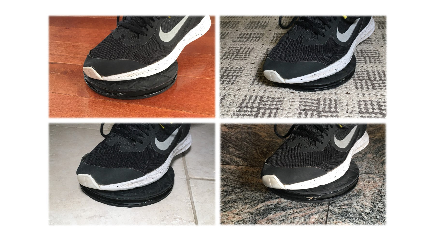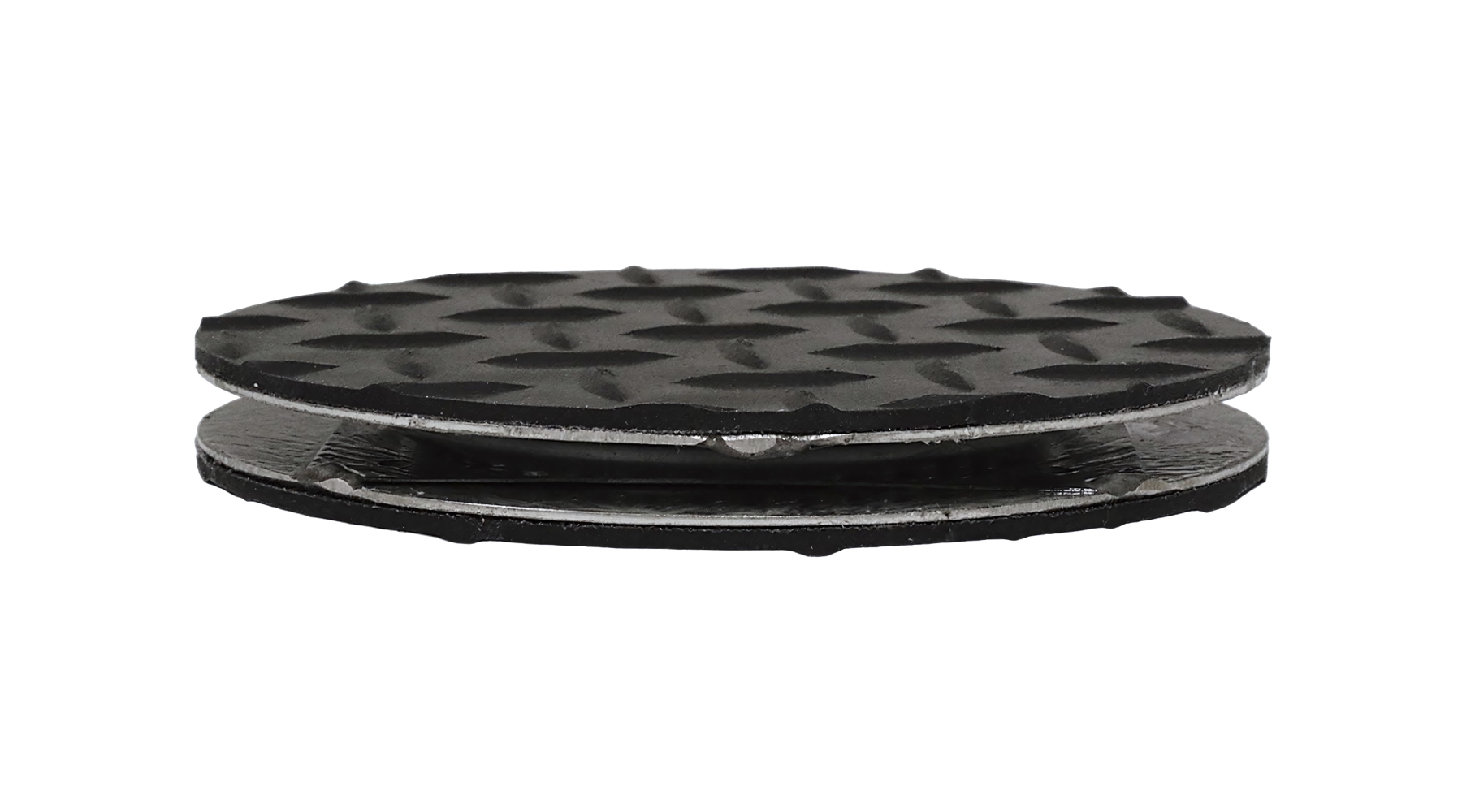 Anti-slip shock absorbent checker plate rubber surface on the front and back. Grips and helps to prevent damage to floors. Allows for use on carpeted floors.